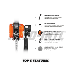 Lever block toyo dilengkapi dengan rantai baja berkualitas tinggi dan tahan lama.