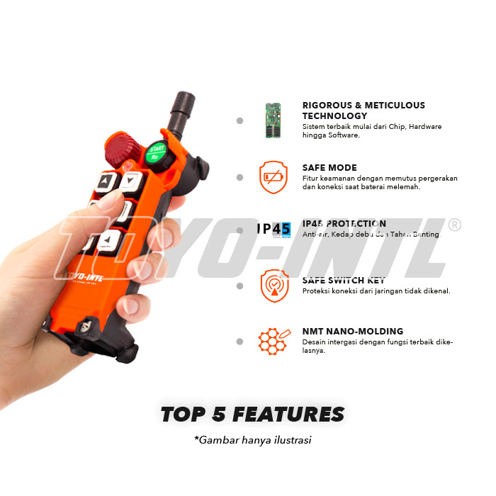 Perangkat industrial remote control semacam ini menawarkan berbagai fitur unggulan, antara lain: